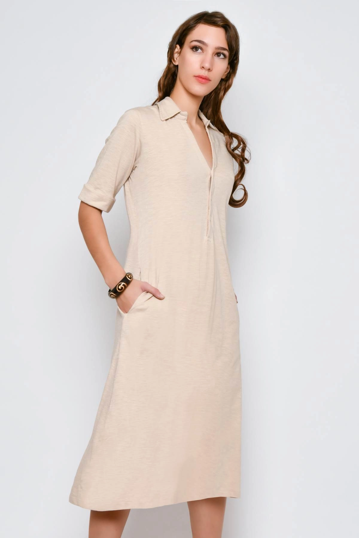 The neutral beige colour makes this dress easy to match, perfect for leisure time, travel or city days.