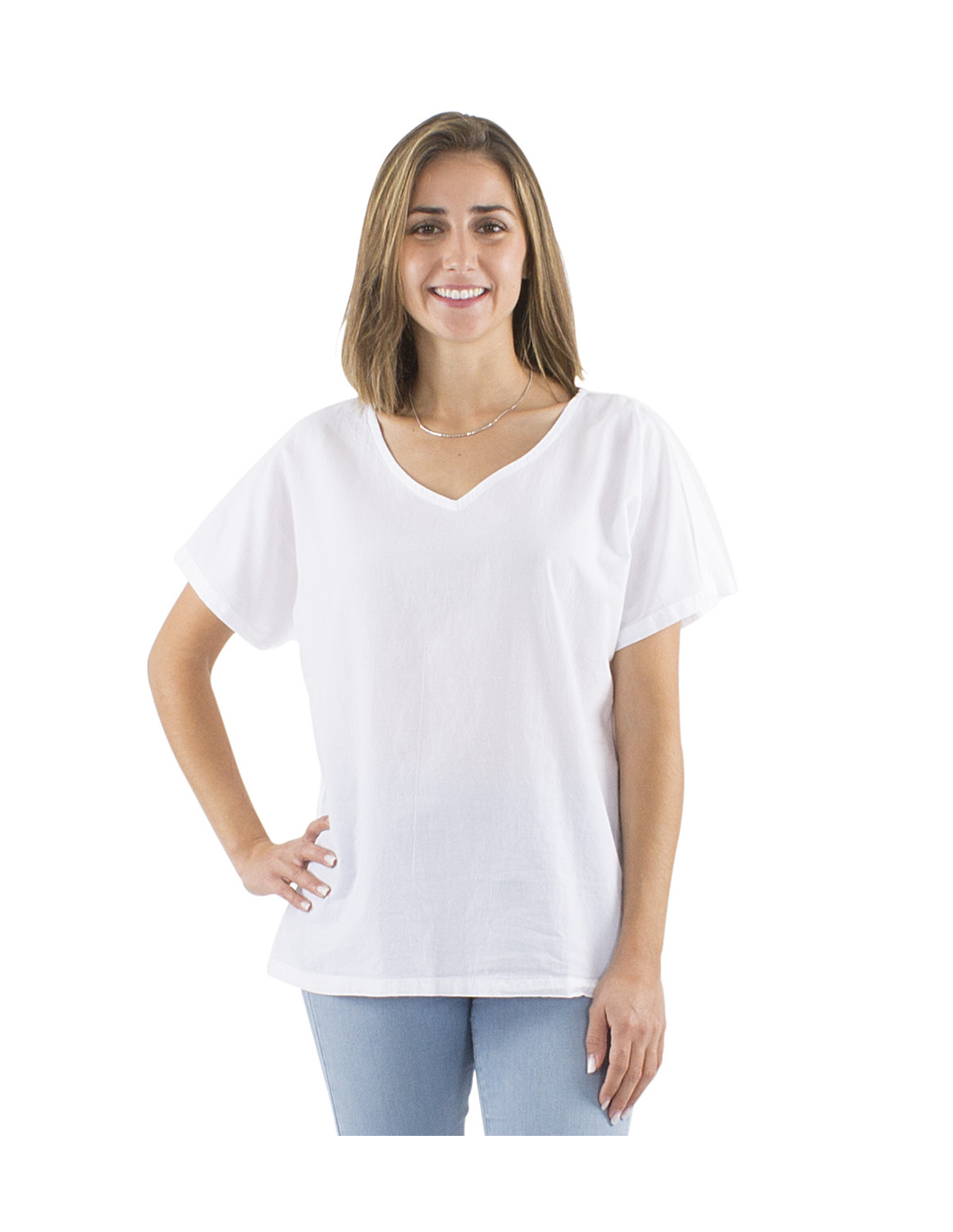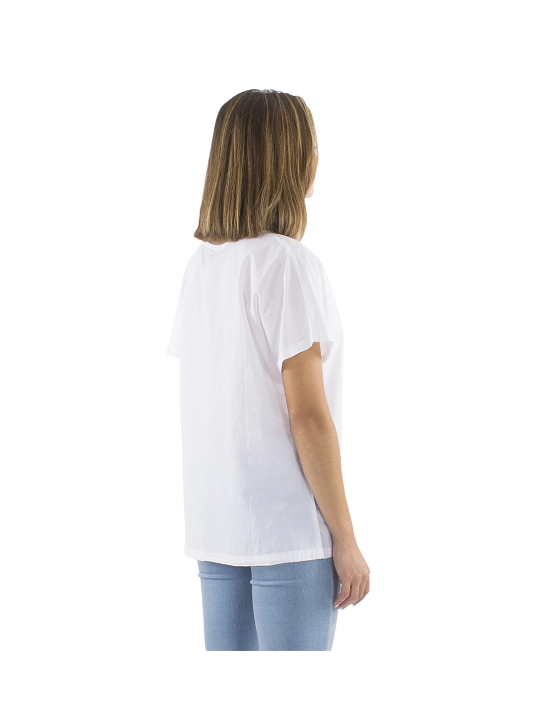 Fresh, lightweight, plain cotton blouse with a soft, straight cut, V-neck and short sleeves. An essential garment for use on hot days.