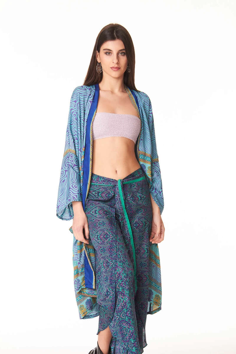 This lightweight shrug is made from rayon, a soft and natural fabric that provides a comfortable feel on warm days. The one-size design fits perfectly for women from size 36 to 50, ensuring both practicality and versatility.