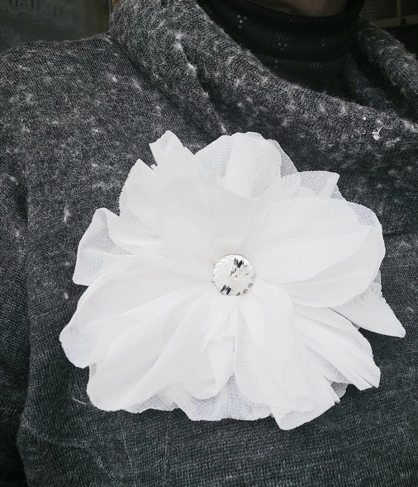 The flower brooch can be worn on an open or closed jacket, on a blazer, a coat, a sweater, a t-shirt.... Do not hesitate to experiment !