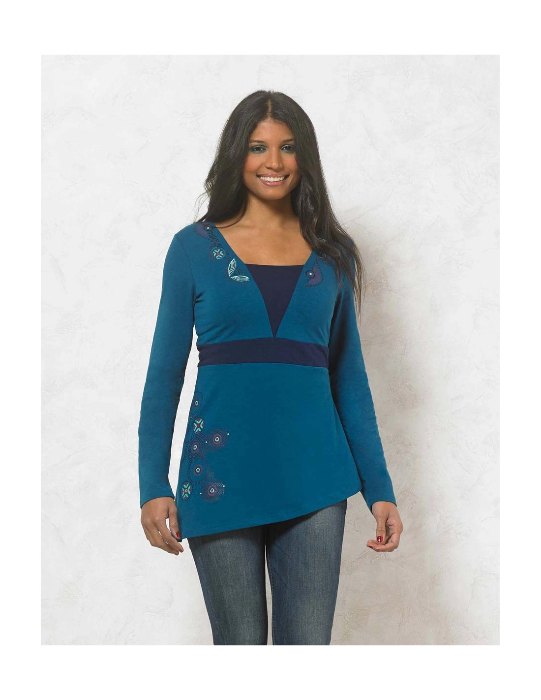 winter t-shirt is perfect to combine with a pair of jeans for a casual chic look or with a skirt and ankle boots for a more sophisticated outfit. The flared cut makes it comfortable and versatile, ideal for those who like to feel comfortable without compromising on fashion.