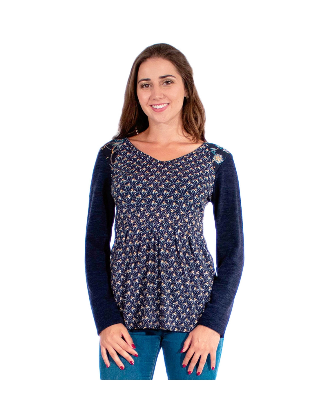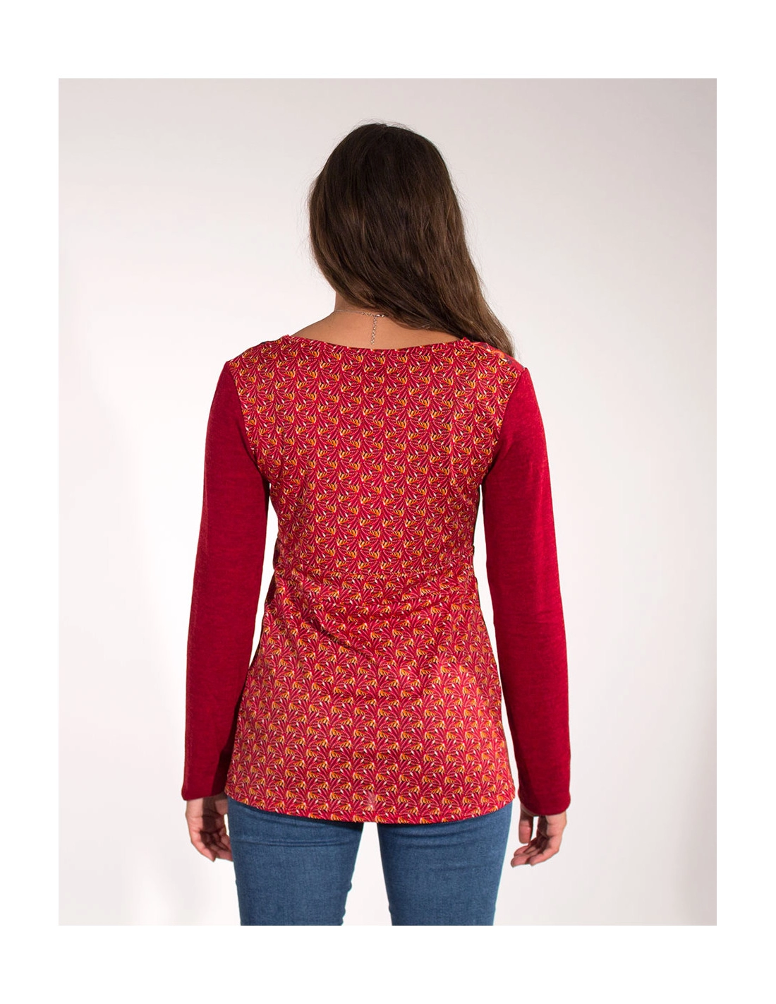 Long-sleeved blouse with V-neck - Available in red and blue.
