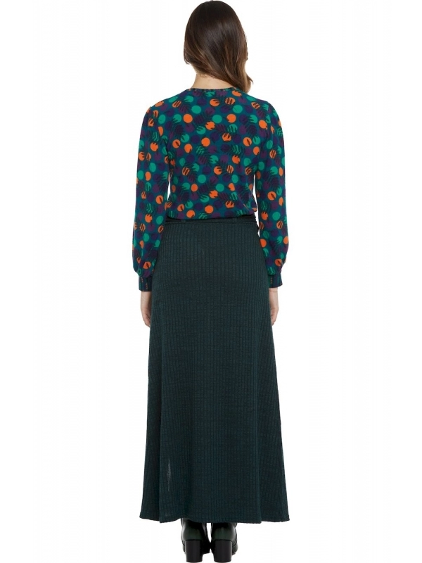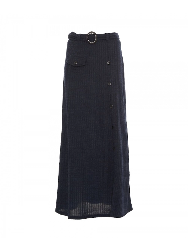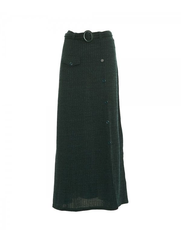 The long monochrome skirt from Baba Design’s Autumn-Winter 2024/2025 collection is a casual and versatile wardrobe essential. Featuring a removable waistband, a row of decorative buttons, a practical front pocket, and a slit for added movement, this skirt is perfect for a trendy look.