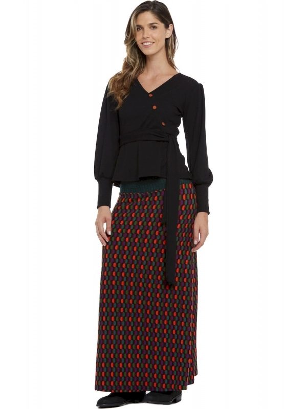Application tip: Wear with wide trousers or patterned skirts.