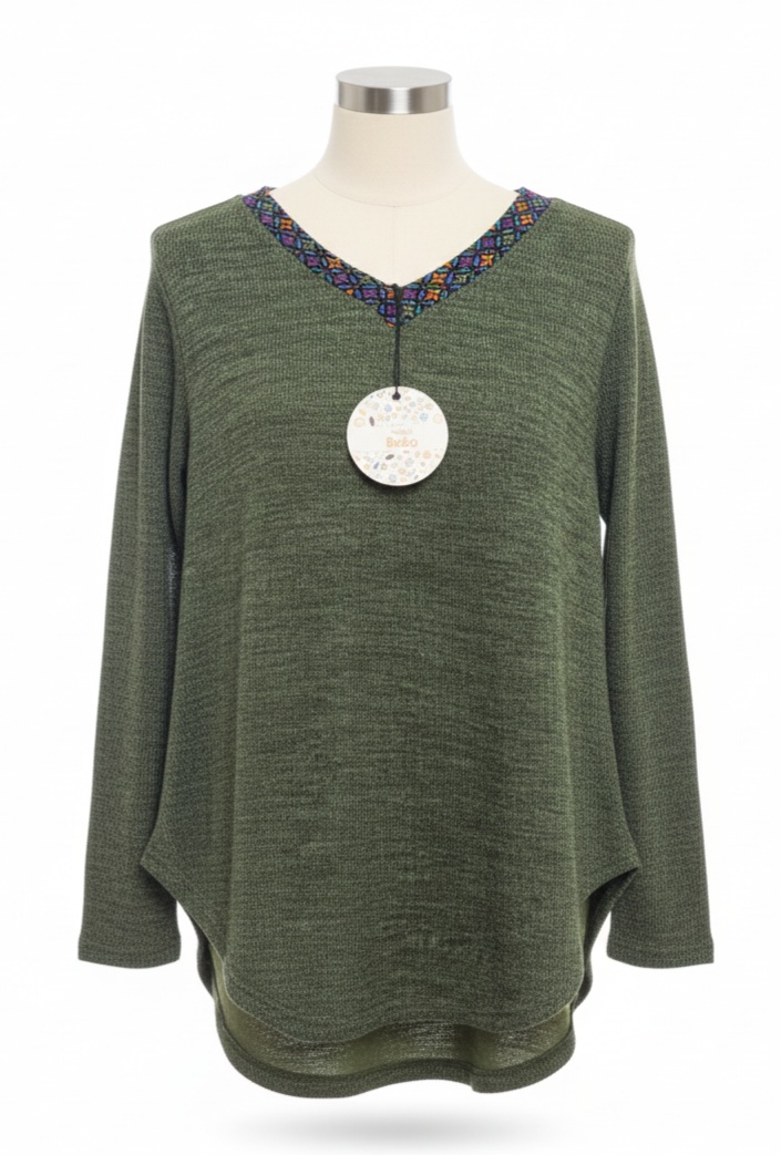 This winter top from the Happy Baba line by Baba Design is designed for those who want a practical piece that is easy to wear during the cold season. Its flared and slightly asymmetric cut falls softly and adapts naturally to the body, making it perfect for everyday wear or informal occasions.